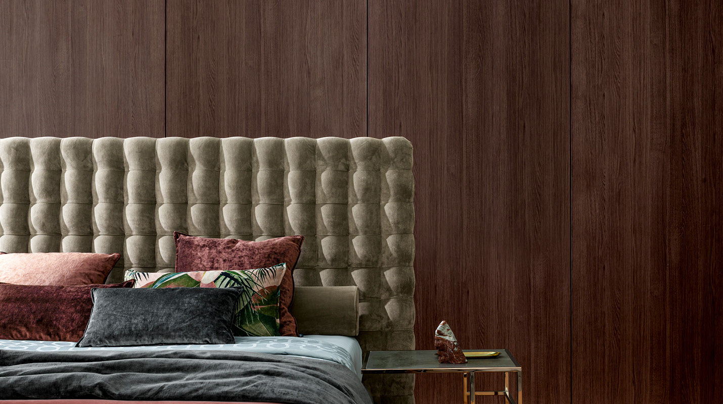 L’armonia delle proporzioni è uno dei punti di forza del design di Chocolat. L’effetto “bugnato” dell’alta testiera è un dettaglio ripreso dall’architettura rinascimentale, efficacemente riprodotto con grande perizia artigianale. Un letto scenografico, a suo agio sia negli ambienti di stampo classico che in quelli di stile attuale.